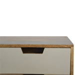 For storing bits like umbrellas, keys, makeup, and everyday essentials this piece of furniture will prove handy all over your home. It is a versatile product that can be suitable for your living area, dining space bedroom, or hallway. It has been constructed from 100% solid mango wood with an oak-ish finish body and 4 cut-out drawers each individually Hand-painted in 4 shades of grey, it is easy as well as practical making it the perfect addition to the home.