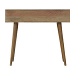 The beautiful console table has been constructed from 100% solid mango wood and features 2 spacious drawers made with a floral bone inlay which has been painted in a light taupe colour and finished with a oak-ish finish base and legs. It can be used as an accent piece in the home or be partnered with the other bone inlay pieces.