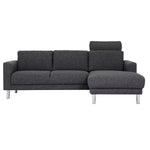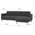 Cleveland Chaiselongue Sofa (RH) in Nova Anthracite. Simply stylish with sleek lines and cool chrome feet, this chaiselongue sofa is the perfect fit to create a cosy spot in any room. The eye-catching Cleveland sofa range offers a generous modern design while being irresistible comfortable. Available in Nova Anthracite or Nova Light Grey.