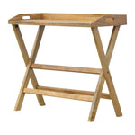 This practical and timeless butler-style writing desk combines both a modern and classic style for everyday use throughout the home. The piece has been constructed from 100% solid mango wood in an oak-ish finish and features practical foldable legs, similar to our butler tray but featuring a cutout detail and ample space to work or study on. The folding mechanism requires the tray to be removed prior to the de-assembling of the base.