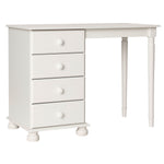 In attractive white MDF, this can be used as a stylish dressing table or as a desk. It would be perfect for the single bedroom or home office. The 4 drawers offer plenty of storage space with room on top for a mirror and photos, or as a desk gives plenty of workspace. Gliding runners with cam lok drawer fronts, crafted from white MDF and finished with a smooth lacquer makes this a durable and attractive choice for any bedroom. Complete this collection with our single or double bed.