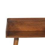 This desk offers a simple yet stunning design, it has been constructed from 100% solid mango wood in a chestnut finish with Nordic-style legs and can make a statement within your living room, bedroom, or study room. It features one large open shelf space which is perfect for working or studying especially from the comfort of your home.