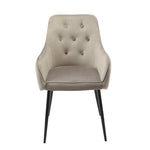 This timeless design is sure to look gorgeous by any dining table, the neutral shade of grey keeps it looking elegant. Finished with a button back and black tapered legs.