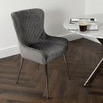 Our diamond patterned chairs feature a sturdy yet comfy backrest, they come in sets of 2 and are brimming with style. The tapered legs keep them looking elegant and sleek, place them around a dining table to add a striking addition to your space.