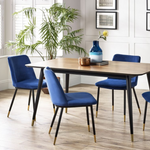 The Findlay collection combines retro design elements with a modern twist. With a walnut finish and brass-tipped legs – this collection will uplift an eclectic range of décor styles. This collection includes a rectangular dining table, a square dining table, a coffee table, a lamp table, and a media unit.