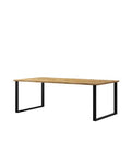 Functionality, modernity, and elegance are the characteristics of this dining table. Crafted from 16mm laminated board, it can comfortably seat up to six people. Both top and bottom surfaces of the table are finished in Oak Wotan to give it a smooth, timeless texture, while the legs are made of black metal so they will match any wall paint.