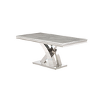 Flaunting a luxury marble finish and a contemporary stainless steel pedestal & base.