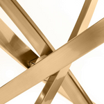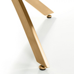 Montero is a strikingly elegant dining table that combines gold metal and glass to create a modern and stylish aesthetic. The intertwined legs leave a unique look and also provide sturdy support for the table, making this a great, durable centrepiece in any home.