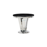 This is a Modern upmarket Marble Dining Table that comfortably seats 4 to 6 people. Polished stainless steel Base and Legs. Minor Assembly Required
