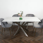 This modern designer marble glass table is a perfect table for a family to enjoy dining together.