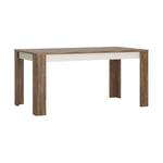 Extending dining table in Alpine White with high gloss fronts and Stirling Oak. Great heat and scratch resistant dining table, perfect for todays modern dining rooms. This great collection is perfect for lovers of bright and moderne interiors, striking and sophisticated.