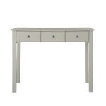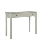 Florence Dressing Table with 3 drawers in Soft Grey can be used as a stylish dressing table with contrasting white stool and mirror from the Copenhagen collection, or as a desk for the single bedroom or home office, crafted from soft grey MDF and finished with a smooth lacquer makes this a durable and attractive choice for any hallway, bedroom or home office.