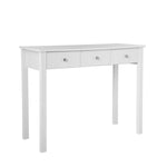 Florence Dressing Table with 3 drawers in White can be used as a stylish dressing table with matching stool and mirror from the Copenhagen collection, or as a desk for the single bedroom or home office, crafted from white MDF and finished with a smooth lacquer makes this a durable and attractive choice for any hallway, bedroom or home office