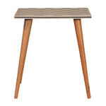 Whether it sits in your living room, bedroom or hallway you will sure find space for this compact piece in your home. Constructed from 100% solid mango wood in an oak-ish finish, and nordic style legs it features a beautiful checkered design on top which compliments the body of the table nicely. It can be used as both an end table and a footstool.