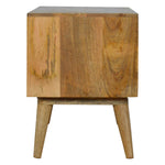 This Nordic style media unit will bring a whole new look to your home, with its modern beautiful design. It is constructed from 100% solid mango wood and has a fine smooth oakish finish. Useful storage space is available with its 2 drawers that are individually hand painted with 2 tones of grey and it also comes with 2 shelves to place your cable box or special ornaments. Other features include 4 Scandinavian styled legs and cut handles for the drawers.