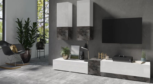 The Power 10 is a stunning, thoughtfully designed entertainment furniture set. It includes three TV cabinets and one hanging cupboard, providing more than enough storage space for housing all kinds of media equipment including DVD players and gaming consoles. The unit is available in three different stunning colour combinations, making it easy to complement the rest of your living room décor.