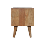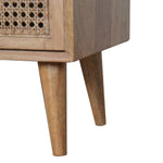 This media unit has been constructed from 100% solid wood and has a lovely oak-ish finish meaning it can compliment many different styles of furniture and fit into a variety of interiors. It provides storage space with 2 rattan front drawers and 2 open slots. Perfect addition to the living room.