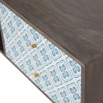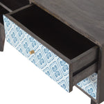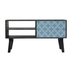 Introducing the LLB range. Space-saving style solutions are now, more than ever, incredibly important for modern living. The Riva collection has been specifically created to suit smaller spaces, and yet Riva furniture pieces remain perfectly formed impactful pieces of contemporary design. This nordic style media unit has been constructed from 100% solid mango wood in an ash black finish and features a blue 'LUCY LOCKET' screen-printed design on MDF drawer fronts which are finished with a shiny knob. Designed by Laurence Llewelyn-Bowen