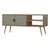 This media unit has been inspired by a clean and modern finish design. It has been constructed from 100% solid mango wood in an oak-ish finish and its main feature is the grey cement door fronts with a beautiful golden brass inlay and 4 gold Nordic style feet which compliments the wooden body perfectly. It has 2 open slots for storing any bits and pieces for placing any books, magazines, or ornaments for quick access. It can be partnered with the other pieces from the collection or stand graciously alone.