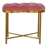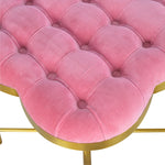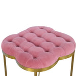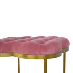 Add this luxurious footstool to any room of the home, clover-shaped and upholstered in a beautiful pink velvet fabric it features a beautiful deep button design throughout giving the piece timeless elegance and allows it to fit into any type of interior as an accent piece. The base has been constructed from a golden base with a criss-cross design for added definition and allows you to rest your feet.