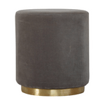 The beautiful and fashionable footstool is the perfect addition to any bedroom or living room. It is available in several beautiful colours and has been upholstered in a luxurious grey cotton velvet fabric featuring a gold base giving the piece a nice contrast. Perfect for putting your feet up, using it as a handbag stand, or just as an accent piece in the home.