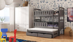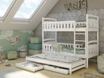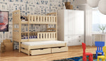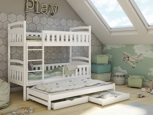 The Anatol bunk bed is a high-quality, pinewood furniture that is built to last for years. It is the perfect solution for those with limited space, yet still want to pack a lot of style into a room. With a universal ladder, removable guard rails, and retractable trundle, Anatol can go from a cot to a bunk, or detach into three separate single beds.