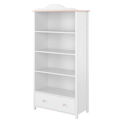 With enough space to store books, toys and knickknacks, this bookcase is the perfect multi-purpose storage solution with minimal use of floor space. It includes four broad open compartments and one large drawer. The LN-02 stands out with its soft colour combination of white matt and light pink while the round knobs add a bit of elegance.