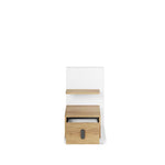 Create a stylish and functional space with the MS-08 bedside table. It is distinguished by its innovative design and unique aesthetics, as well as a sturdy structure strengthened by ABS edging. The table offers storage space in the form of one drawer and one shelf, ideal for storing your personal belongings.