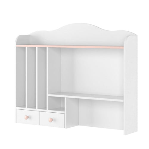 The LN-04 is a practical add-on for the Luna computer desk. Constructed from solid laminated board with a soft colour combination, it features multiple shelves, a pair of small drawers and numerous open compartments. It will work perfectly with your child's bedroom decor and lets them keep all their cosmetics and art supplies perfectly organized and in easy reach.
