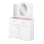 This elegant hutch is a perfect add-on to utilize on the Luna computer desk or the sideboard cabinet. It is distinguished by a big, round mirror at its centre, giving the child the perfect spot to keep their beauty in check. There are also several shelves positioned around the sides of the hutch for storing cosmetics and personal care items.