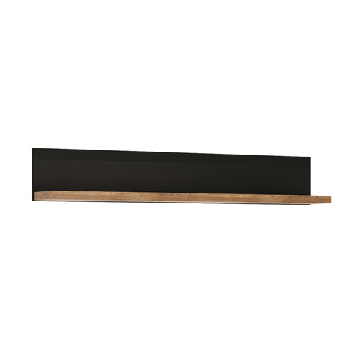 Wall shelf in Lefkas Oak with matt black fronts. This handy wide wall shelf is ideal for family pictures and treasures. This traditional yet contemporary, stylish yet functional range - is stunning elegant and practical and for all modern homes.