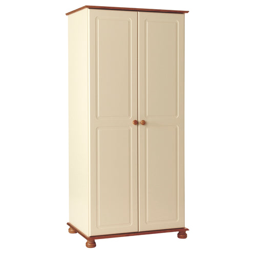 In attractive Creme MDF/Pine, this is a large bedroom wardrobe with plenty of storage space crafted from Creme MDF/Pine with a stylish door design. Offering spacious hanging room and includes a fitted shelf for extra interior storage. An added touch is the special adjustable hinges we use on all wardrobe doors to offset any problem with uneven floors. Complete this collection with our matching 2+4 Drawer Chest and bedside cabinet.