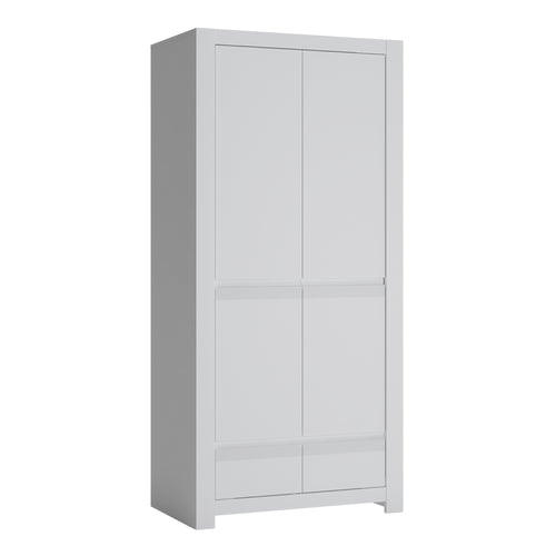 • This handleless wardrobe with both hanging space and shelving includes two drawers for additional space