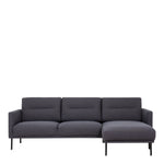 Chaiselongue Sofa (RH) in Soul Anthracite with black legs. A modern inspired design, kept sleek and angular with slim legs. Comfort has not been sacrificed for design, with its comfy back cushions and wide armrests. All together the perfect and stylish place to spend your evenings.