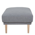 Footstool in Soul Grey with oak legs. A modern inspired design, kept sleek and angular with slim legs. This comfy footstool sits nicely with the range, creating a perfect and stylish place to spend your evenings.