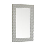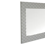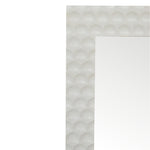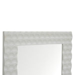 This high-quality rectangular shaped white hand painted mirror has been fitted into a beautiful and elegant honeycomb hand carved mirror frame. It is perfect for most bedrooms, hallways, and living rooms, and is made to become the main focus in any setting. It is both a wall mirror and a leaning mirror and can be used vertically or horizontally, It can be used alone as an accent piece or be partnered with the other pieces from the honeycomb collection.