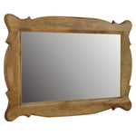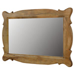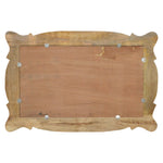 This high quality oblong shaped mirror is fitted into a beautiful, handcrafted 100% solid mango wood frame. It features an oak-ish finish, with elegantly hand carved designs around the frame. All mirror frames are supplied with a metallic clips, for mounting it on the wall and are pre-fixed with a high quality mirror.