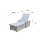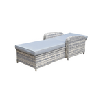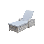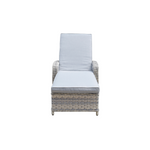 The Carter single sun lounger with arms in silver grey wicker complemented with pale grey cushions