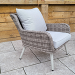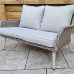 Care Instructions: Cushion covers are showerproof but need to be stood on their ends for water to drain away. All cushions should be stored away in a dry area when not in use. Cushion covers can be cleaned with soapy water and damp cloth that is not abrasive. We do not advise washing or tumble drying as this may affect the showerproof properties. Do not leave any glass items/objects on the table without mats/coasters. Do not store glass on its end during assembly; please place it on a flat surface on the carton provided. Cover glass in extreme heat as this can magnify the heat and melt wicker.
