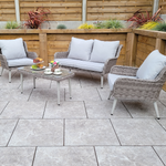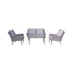 The Harper four-seater sofa set is made in fine grey wicker with pale grey cushions and retro style legs