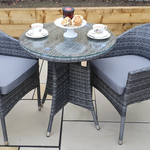 Introducing the Muse 70 Outdoor Rattan Bistro Table in Grey, the epitome of style and durability for your outdoor space. With a sleek 70cm diameter, this table is perfect for intimate gatherings or leisurely mornings in the sun.