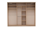 Built from solid laminated board, this Cremona wardrobe is large, spacious and functional. With sliding doors on both sides, it fits easily into the corner of a room while still leaving enough space the doors to effortlessly open. The wardrobe’s interior is segregated to maximize the storage capacity. Variably sized compartments and shelves as well as four hanging rails are featured.