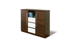 Store your belongings in style with the Dome chest, featuring ample storage space with four shelves, an open compartment and three spacious drawers. The clean lines and sleek design of this chest complement most decors, providing versatility and functionality in a modern setting. This chest is constructed from sturdy laminated board that is durable and easy to care for.