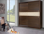 The Dome two-door sliding wardrobe impresses with its strong accents of Laredo Pine and a stripe of gorgeous Oak Sonoma décor marking the front. Its interior has been practically divided into two sections, one offering a decent amount of space for hanging clothes and the other full of spacious compartments. This wardrobe comes in two different sizes – 150cm and 200cm.
