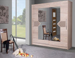 Finished in a combination of Oak Sonoma and Cappuccino gloss décor, the DO4 wardrobe has a traditional as well as a stylish vibe to it. It has two sliding doors, each with a highly decorative design and large pieces of mirrors for visually enlarging the space. The wardrobe has removable shelves and one hanging rail; hence, users can customize the interior and create unique interior arrangements.