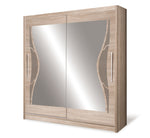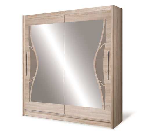 A two-door mirrored wardrobe finished aesthetically in the bucolic Oak Sonoma. The DO6 is available in three different widths, each offering a unique arrangement of interior space, but all segregated to allow maximum capacity and categorical storage. For increased durability and structural strength, this wardrobe has been made from high-quality laminated board.