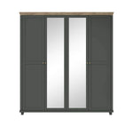 Bring style and elegance to your bedroom with this mirrored wardrobe. Available in two colours, Oak Lefkas with either dark green or white, it will fit in any modern or contemporary decor. The wardrobe is made from 16mm laminated board, and offers four doors, five shelves and one hanging rail for storage space.