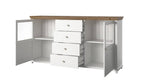 Whether it is used as a sideboard or console, this beautiful piece of furniture will not only help you organise your things but also add character and functionality to the room. It features four spacious drawers with metal runner and two hinged doors that glide open effortlessly. Promising high quality, the fashionable Evora 25 is made from 16mm laminated board so it can handle all the weighty items.