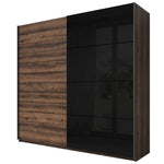 A functional, modern and brilliantly crafted two-door sliding wardrobe that impresses with its high-quality craftsmanship and comes available in three different sizes - 200cm, 220cm and 270cm. The 200/220 cm versions feature five shelves and one hanging rail while the 270cm variant offers six shelves and two hanging rails. Finished in the stunning colour combination of black gloss and Oak Monastery, it will effortlessly blend in any modern or vintage decor. It is made from 15mm furniture board and strengthened with finish foil.