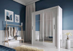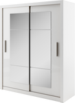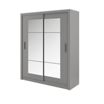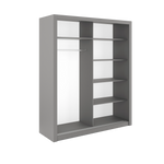A stylish two-door wardrobe with partially mirrored fronts, minimalist handles and a spacious interior. The ID-02 comes in three different colours – universal white, a bucolic oak decor or the graceful grey. Storage options include six roomy compartments and a large hanging section.
